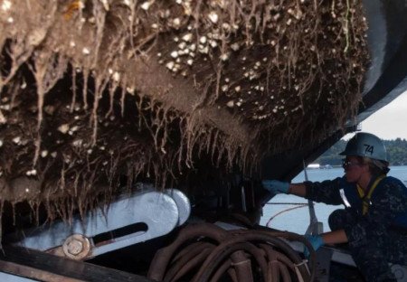 當(dāng)生物污染物附著在船底時(shí),它們會(huì)讓船只變得更重更粗糙,從而讓水流對船體的阻力變得更大。這就像你穿著一件沾滿泥巴的厚外套跑步一樣,你會(huì)感覺很累很慢。如果不定期清理船底,船只就需要消耗更多的能量才能達(dá)到相同的速度,或者以相同的能量只能達(dá)到較低的速度。這樣不僅會(huì)影響航行效率和時(shí)間,還會(huì)增加運(yùn)營成本和環(huán)境污染。